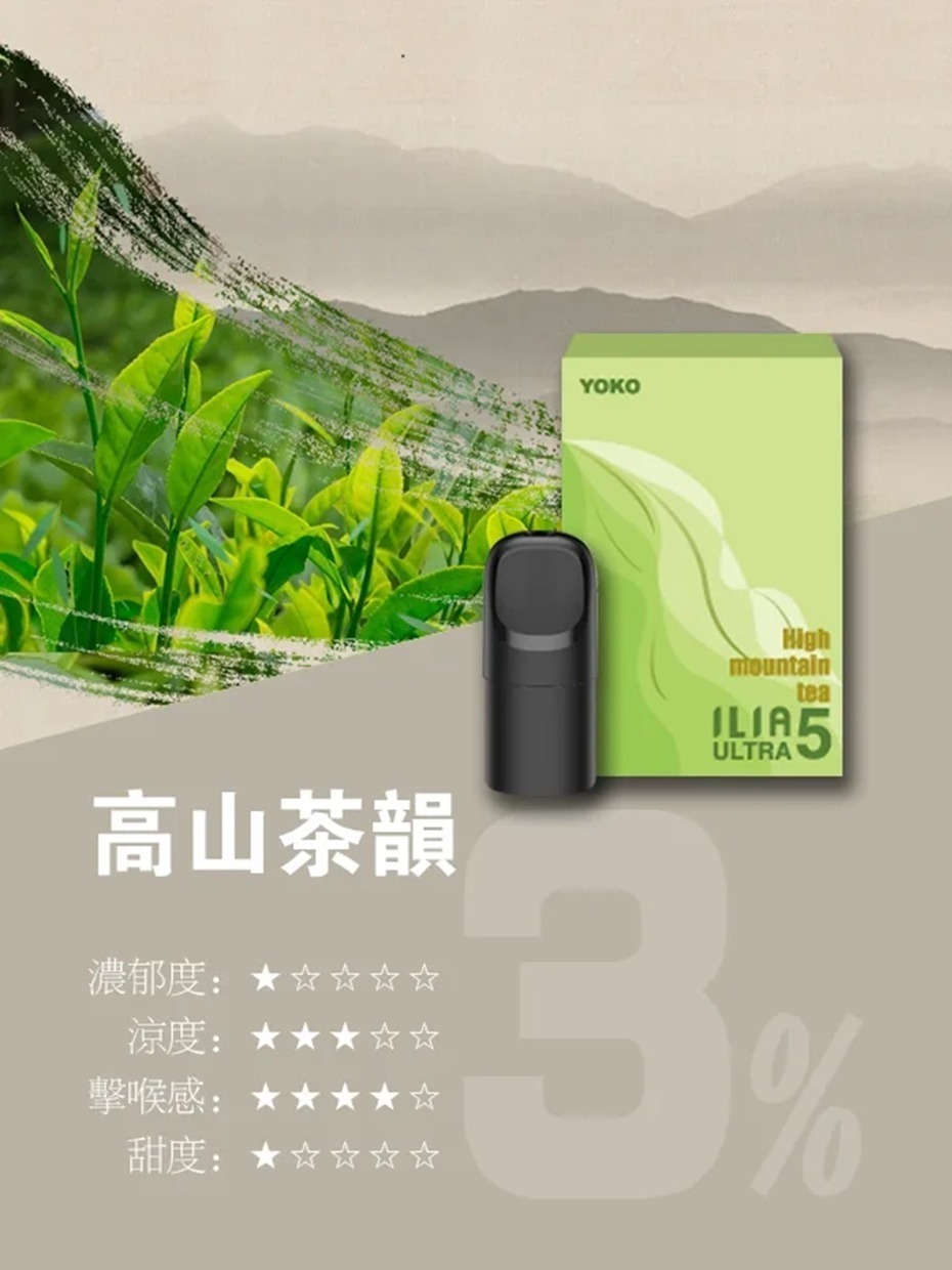 高山茶韻:這個口味模仿高山茶的風味,茶香濃郁且回甘,適合喜歡茶味的電子煙使用者,具有一種高雅的韻味。
